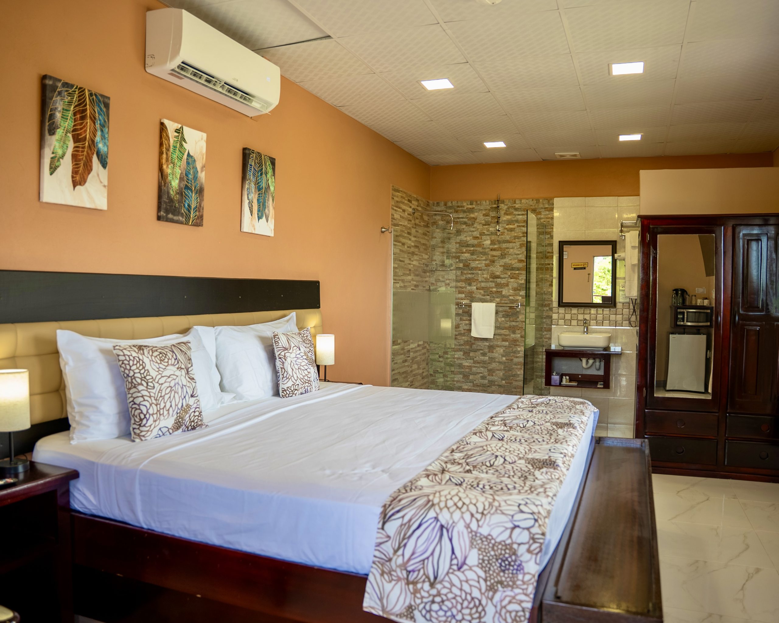 Ideal for couples craving relaxation. Our king room features a luxurious king bed, ideal for couples who desire indulgence, with the option of hosting one extra guest. Paired with a sofa bed